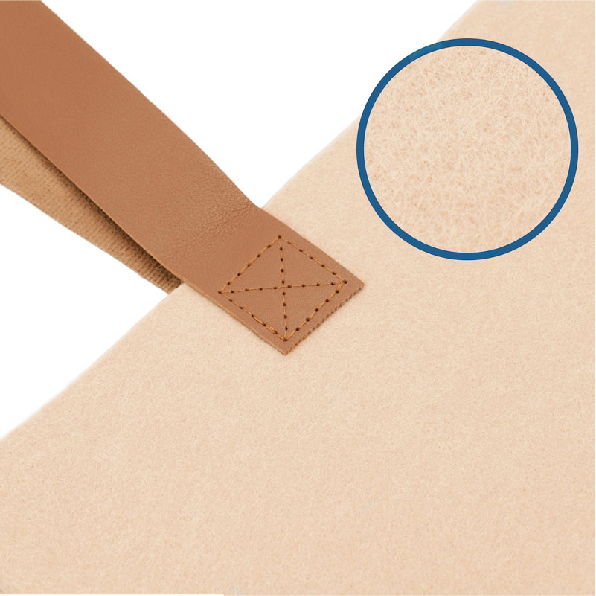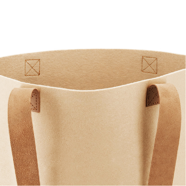 Esta bolsa de fieltro reciclado es una opción sostenible y reutilizable que ayuda a reducir el uso de bolsas de plástico de un solo uso, contribuyendo a un consumo más responsable.