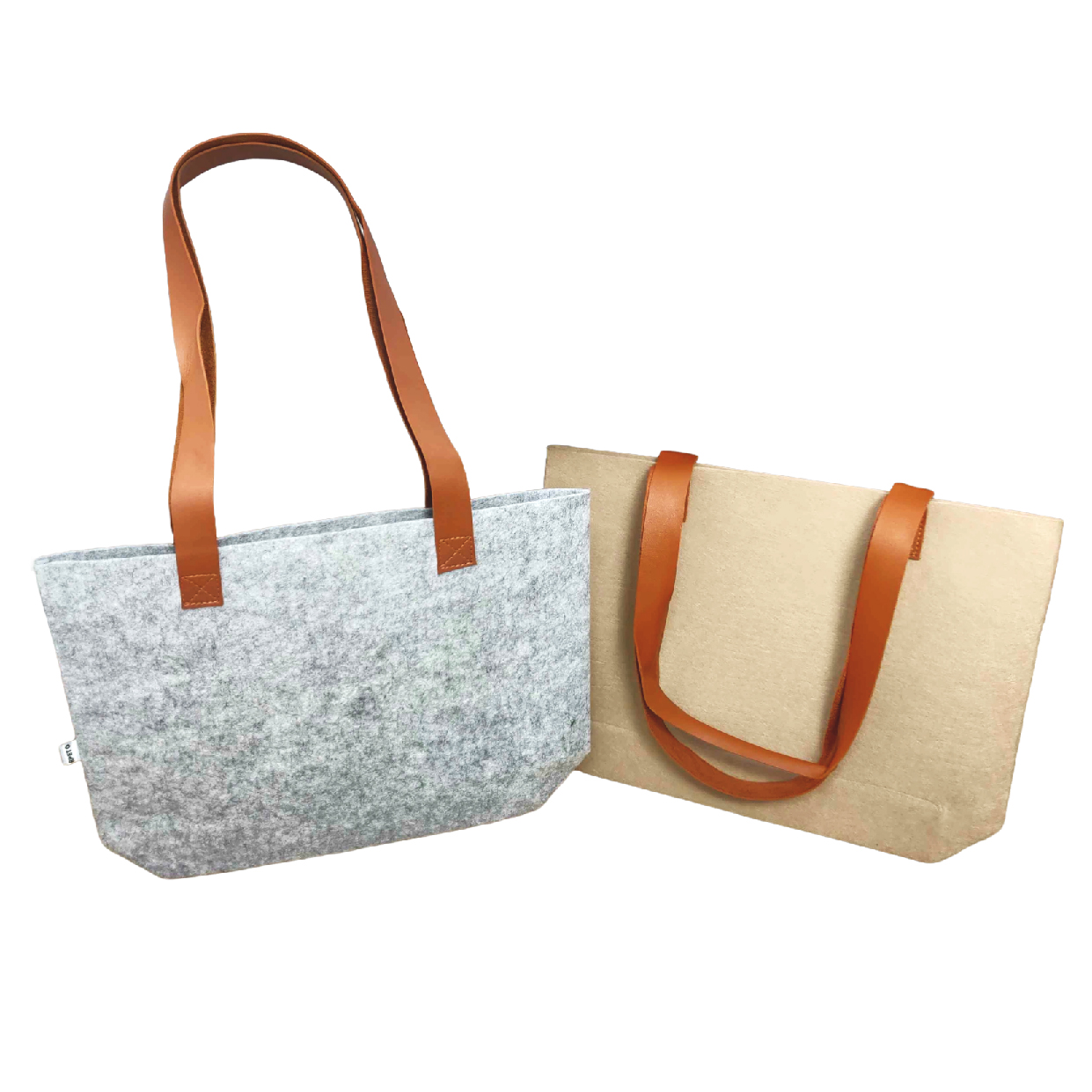 👜 Bolsa Personalizada de Fieltro Reciclado – Gris Jaspeado y Beige